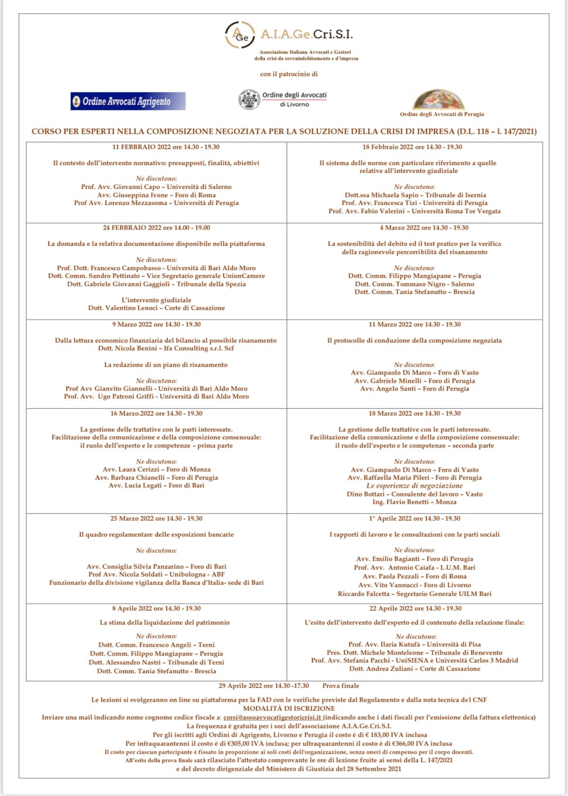 Organizzato dall'Associazione Italiana Avvocati e Gestori della crisi da sovraindebitamento e d'impresa